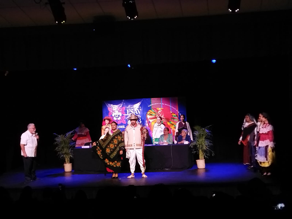 Posterior a esto se dio entrada a una pasarela con trajes regionales pertenecientes a la indumentaria del estado de México 5 diferentes etnias del estado de México de las cuales casi la mitad se ha perdido, luego de eso se nos explico todos y cada uno de los trajes y dándonos contexto del lugar de donde provenían, también se nos menciono que una de las razones principales de por qué se están perdiendo estos trajes es por el alto costo de su elaboración ya que estos son trabajos artesanales.